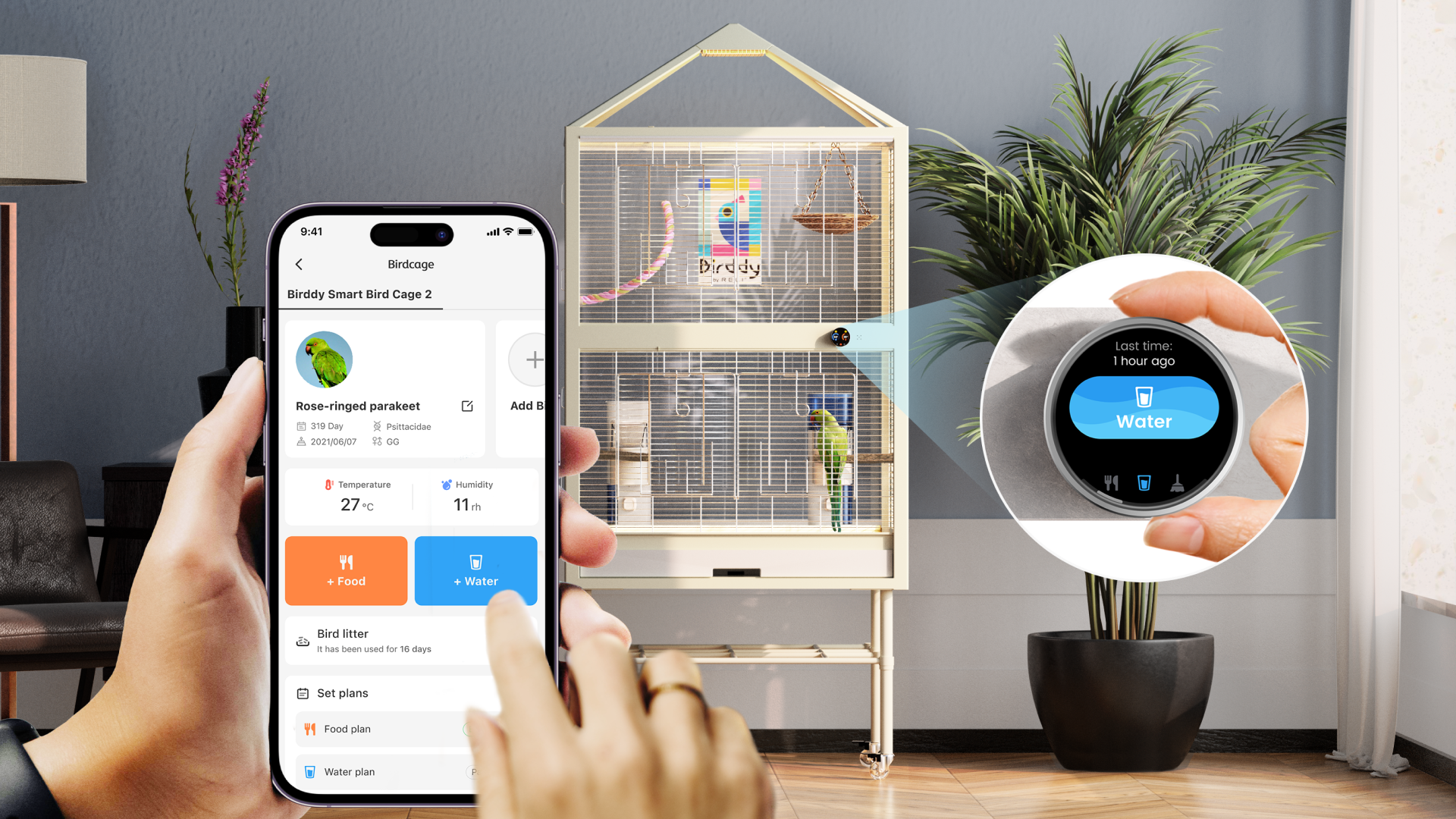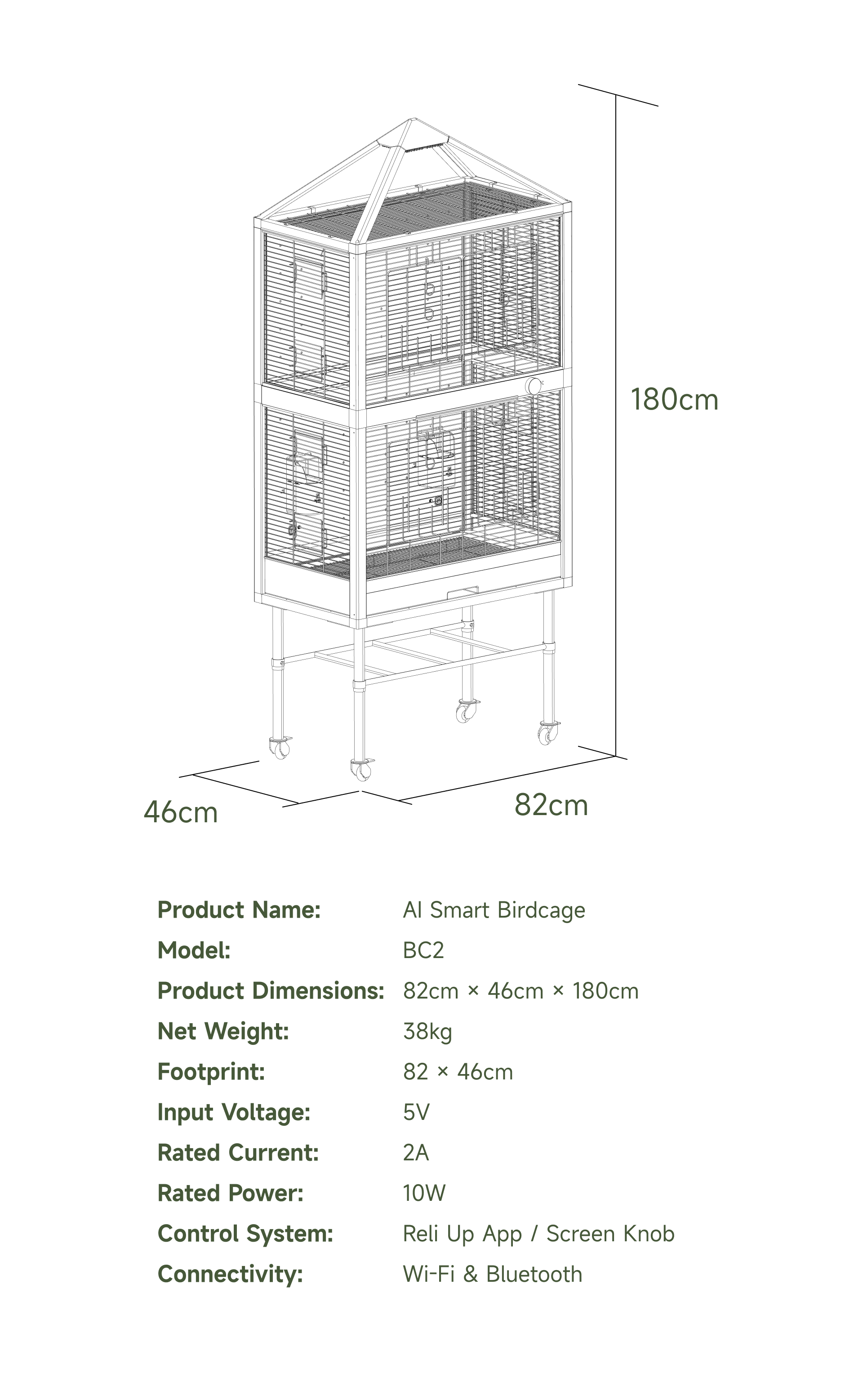 A smart bird cage designed for reliable, everyday bird care. Reli Birddy Smart Bird Cage automates feeding and watering to support consistent daily routines, with optional AI camera available separately for monitoring activity and behavior.