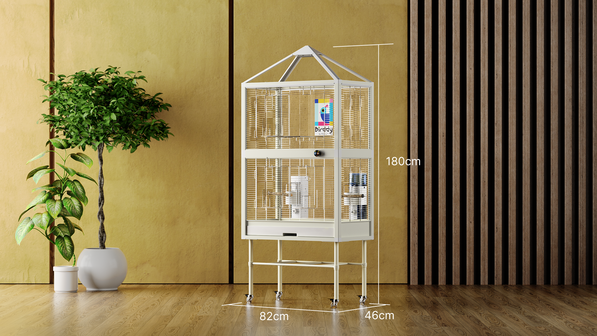 Birds thrive in open spaces, hopping, climbing, and stretching their wings freely. That’s why we crafted a bird cage with a spacious room of 32'' x 18'' x 71''(82cm x 46cm x 180cm), providing your bird companion maximum comfort to move, play, and interact.